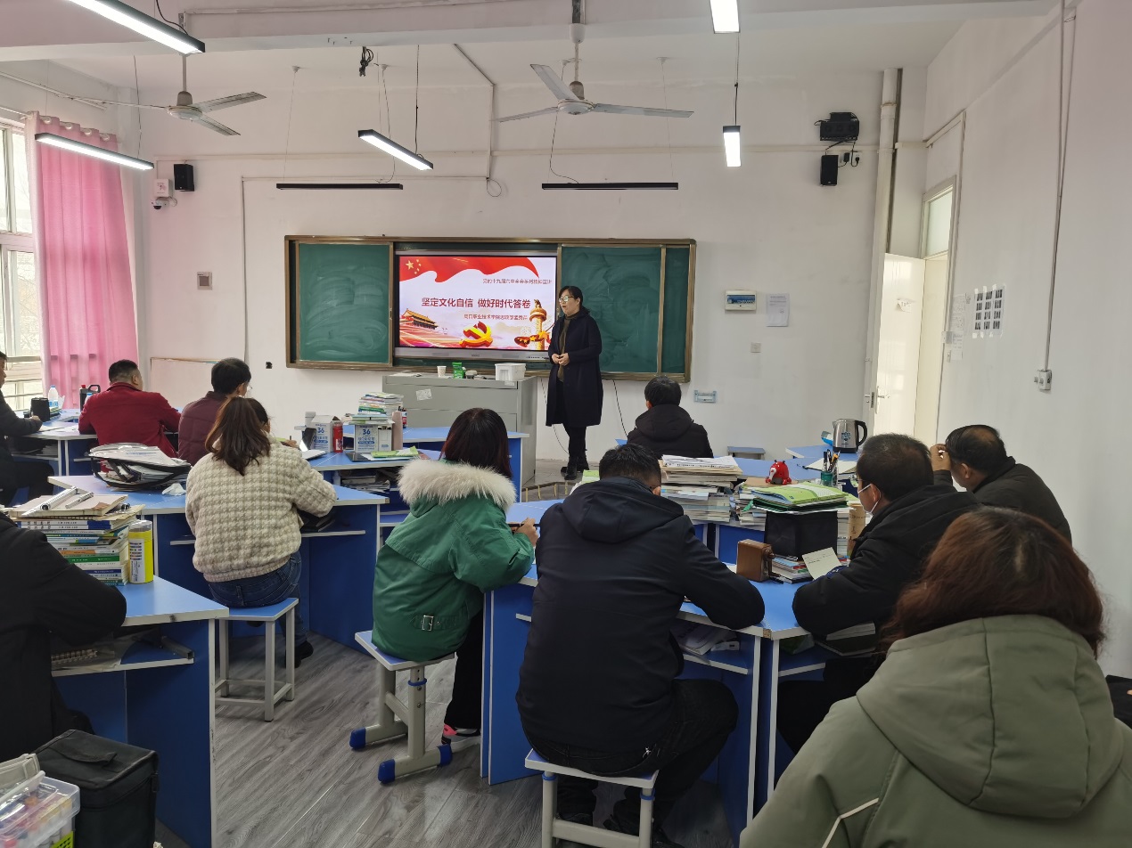 孟老师以“坚定文化自信,做好时代答卷”为主题,从厘清文化脉络夯实自信之基、坚定文化自信讲好中国故事、担当复兴大任奋力拼搏等方面结合党的理论成果和详实案例为我们阐述了文化自信是最基本、最深沉、最持久的力量,具有深厚的文化底蕴和坚实的现实基础。