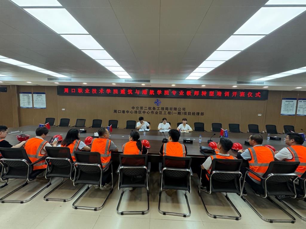 培训期间,参训教师通过在周口港中心港区中心作业区工程项目现场,参训教师团队深入周口港中心港区中心作业区工程现场,开展为期两周的工程全流程实践,多岗位体验工程建设全过程,并对接现场工程师讲解施工细节,提升工程问题解决能力。项目工程师带领教师们实地考察码头结构、航道疏浚及智能仓储系统,体验施工员、技术员、安全员等多重角色,系统掌握港口工程从设计到交付的核心技术要点。