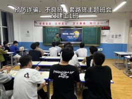 各班辅导员通过正反两面案例的视频展示,向同学们详细阐述了不良贷、套路贷的相关内容和违法校园贷的借贷后果,为同学们敲响警钟。并引导同学们积极参与讨论,共同探讨防范措施。