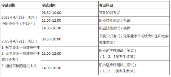 考试由文化知识考试、职业技能测试(职业适应性测试)两部分组成。
