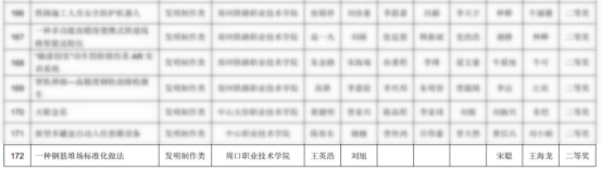 我院22建装员工王英浩、刘旭,在宋聪、王海龙两位老师指导下完成的《一种钢筋堆场标准化做法》,荣获第十八届全国高职院校“发明杯”老员工专利创新大赛二等奖!